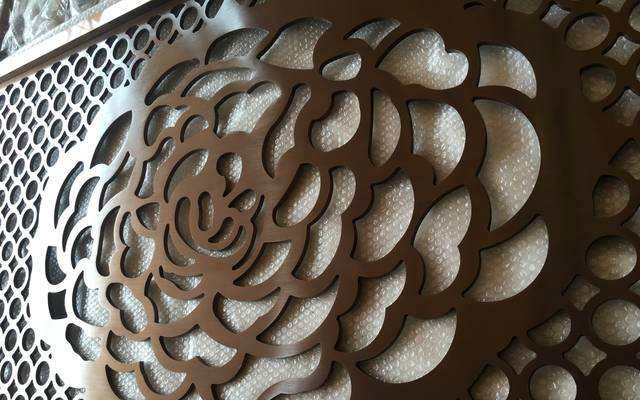 鋁板雕刻屏風(fēng)、幕(mù)牆、護欄、門花、浮雕工藝畫係列,其常用材料(liào)型號(hào)為5052鋁板,狀態為H12,基本尺寸為1220mm×2440mm (平板)。